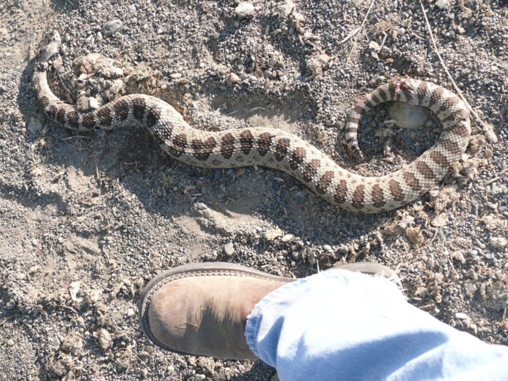 And he had power to kill, but no authority. He had not been commissioned by any judge to execute a death sentence. In the picture above, he is quite dead. Soon I will cut his head off. But let’s not get careless. He can still bite. Watch out as he writhes on the ground; don’t get too close. Watch, and think of death writhing in death. Jesus conquered it on the cross. He “cut its head off.” But there again, don’t play with the sting end, sin. It can still bite. Its authority is revoked, but the insidious power remains.